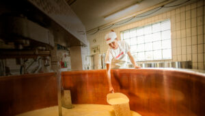 Emmentaler AOP wird auch heute noch traditionell-handwerklich hergestellt, natürlich nach der ursprünglichen Emmentaler AOP-Originalrezeptur und nach den strengen Richtlinien des Pflichtenhefts von Emmentaler Switzerland.