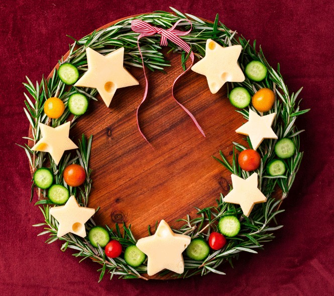 In der Adventszeit freut man sich auf das grosse Weihnachtsfest, das langsam näher rückt. Nähe schafft auch der Adventskranz aus duftendem Rosmarin und Sternen aus Emmentaler AOP, denn er bietet etwas, das andere Kränze nicht haben: himmlischen Genuss. Mit dem Adventskranz zum Anbeissen darf sich Weihnachten ruhig Zeit lassen!