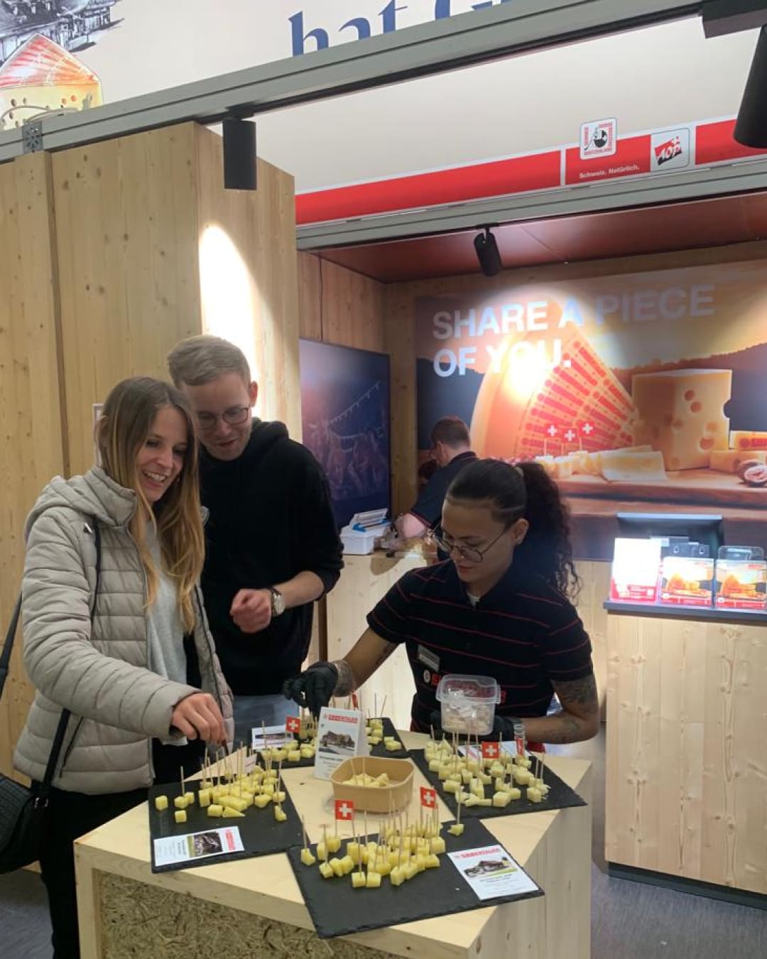 Vom 28. April bis 7. Mai fand die BEA statt und auch in diesem Jahr durfte der Emmentaler AOP nicht fehlen. Unter dem Motto Genuss und Information wurde der Stand offen gestaltet, um den Besucher:innen die Möglichkeit zu geben, Emmentaler AOP von mild bis rezent zu degustieren, Informationen zur Herstellung des Naturkäses einzuholen oder am Wettbewerb teilzunehmen. Die Vielfalt, die Emmentaler AOP zu bieten hat, überraschte viele der Gäste. Nebst dem milden Emmentaler AOP fanden auch die rezenten Varianten grossen Anklang. Neu war im Bistro zudem eine Emmentaler AOP Crèmesuppe erhältlich, welche Ivo Adam kreiert hat. Das Feedback auf das neue Standkonzept war insgesamt sehr positiv und die Gäste genossen die Möglichkeit, in die Welt des Emmentaler AOP einzutauchen. Nun freuen wir uns bereits auf den Stand an der OLMA, welche vom 12. – 22. Oktober 2023 stattfinden wird.