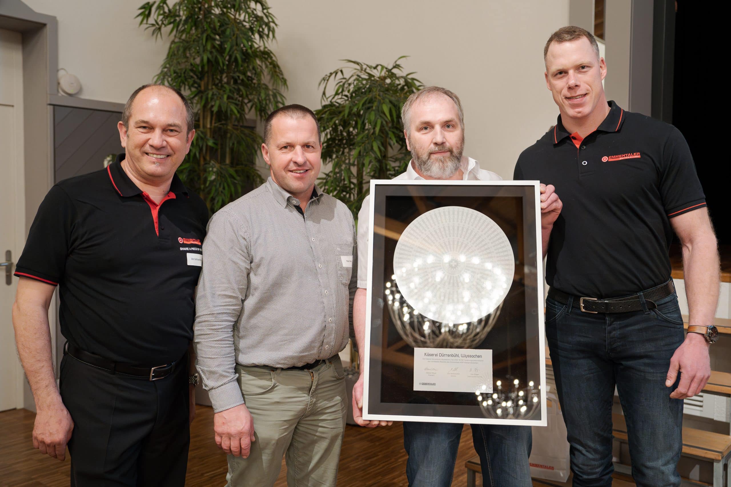 Auch heuer wurden wieder die besten Emmentaler AOP Dorfkäsereien und Käser:innen des vergangenen Jahres geehrt, die sich tagtäglich mit Leidenschaft ihrem traditionellen Handwerk widmen. An der Delegiertenversammlung von Emmentaler Switzerland am 18. April 2023 wurden die Diplome in feierlichem Rahmen verliehen: die goldene Strahlenmarke hat dieses Jahr die Käserei Ursenbach gewonnen. Fritz Lehmann und sein Team erreichten einen ausgezeichneten Punkteschnitt von 19.83 von total 20 möglichen Punkten.