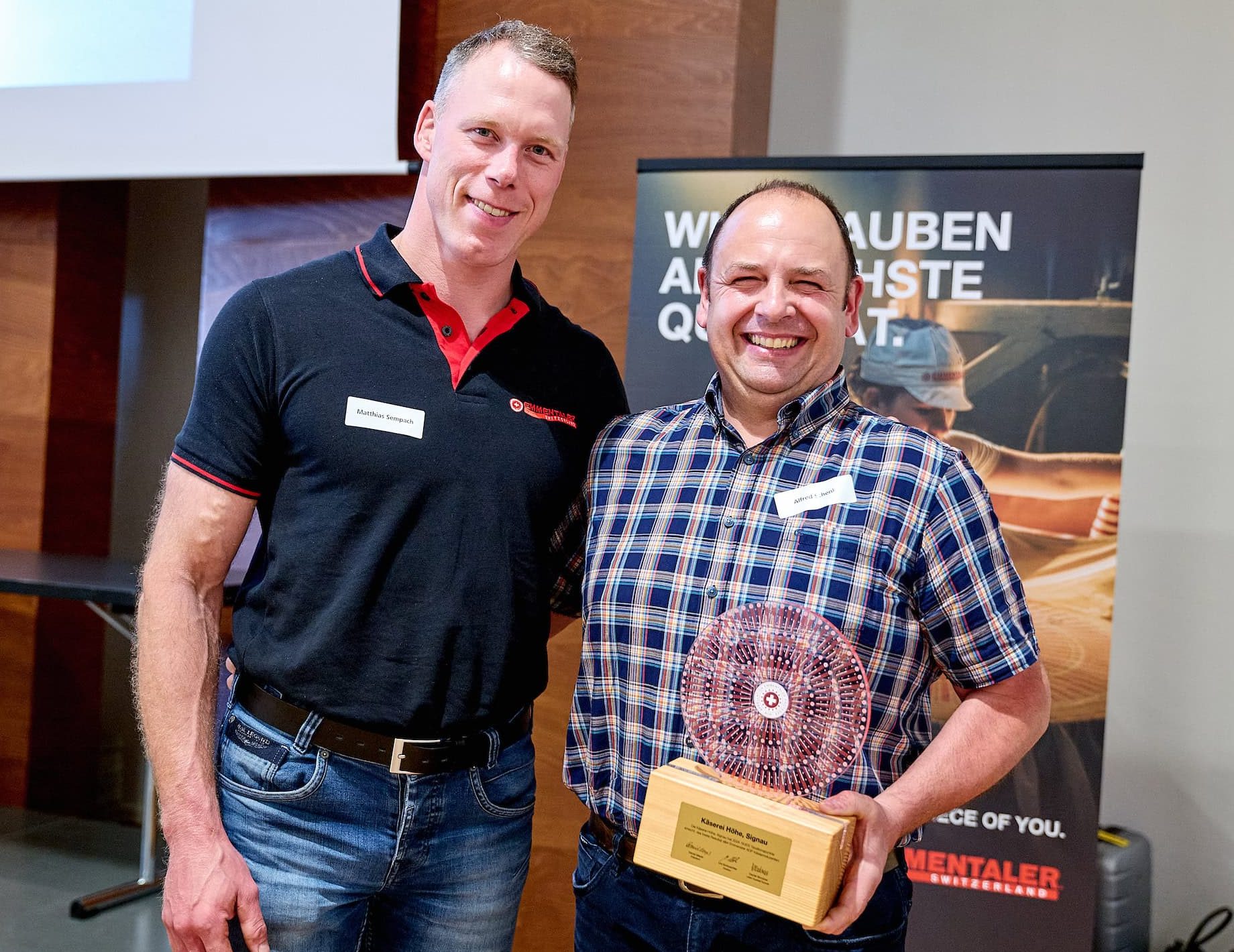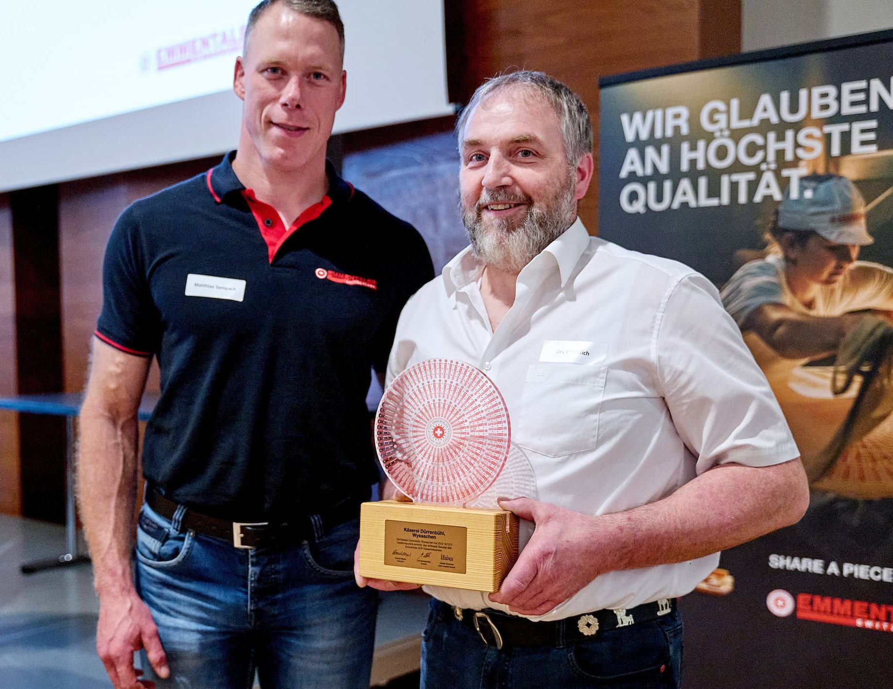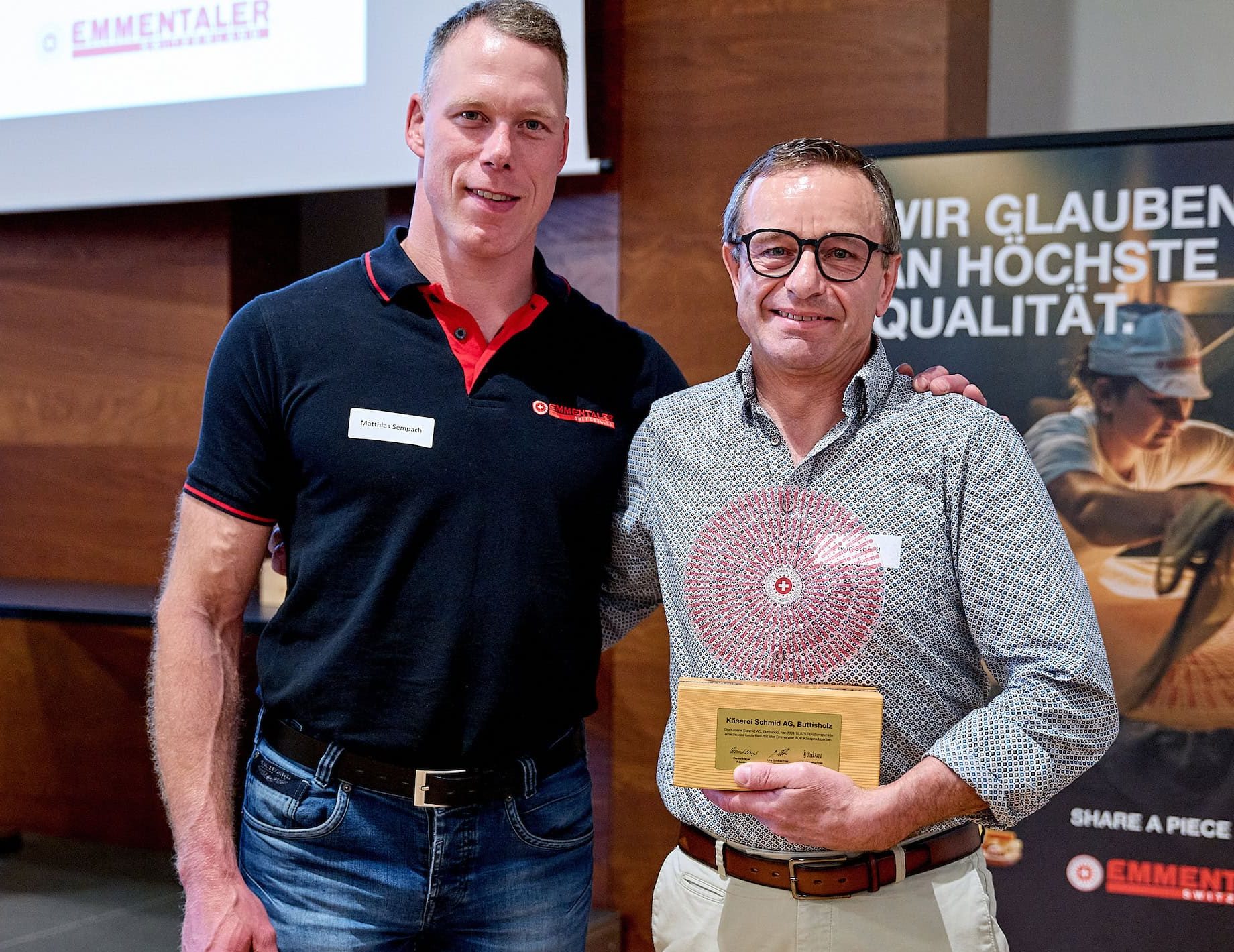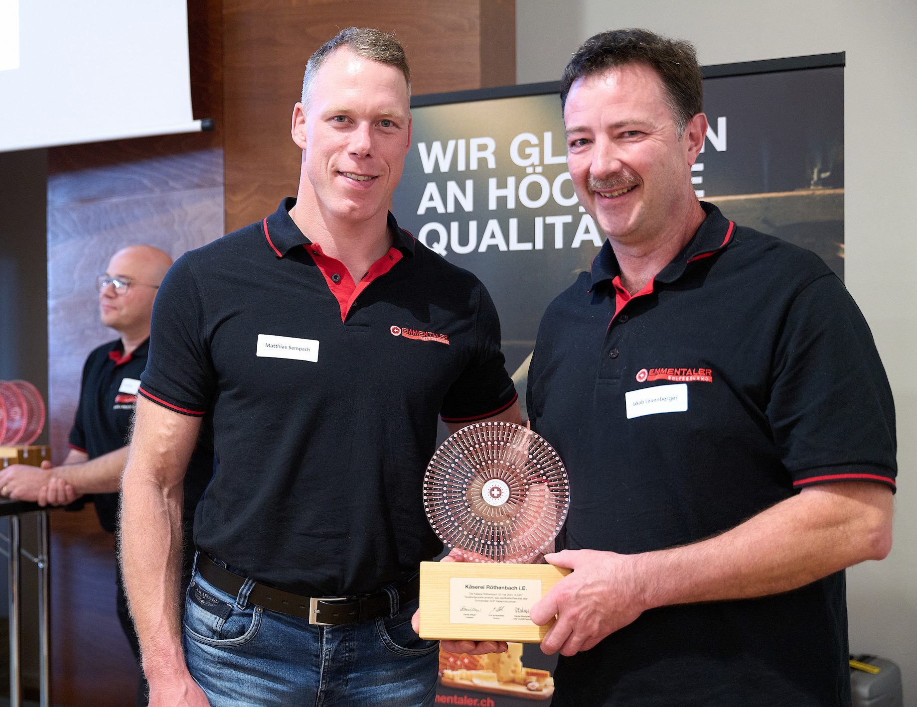 Traditionsgemäss wurden die besten Käsereien des Jahres an der Delegiertenversammlung geehrt und ausgezeichnet. Bei der Taxation im Alter von 4 Monaten werden die Emmentaler AOP-Laibe der fast 100 Emmentaler AOP-Dorfkäsereien überprüft und bewertet. Im Jahr 2024 erreichten nicht weniger als 86,36 % der Emmentaler AOP-Laibe eine absolute Spitzenqualität mit Bewertungen zwischen 19 und 20 Punkten. Die Awards für die beiden besten Käsereien 2024 gingen an die Käserei Höhe sowie an die Käserei Schmid AG, die im Durchschnitt 19.875 von total 20 möglichen Punkten erreichten.