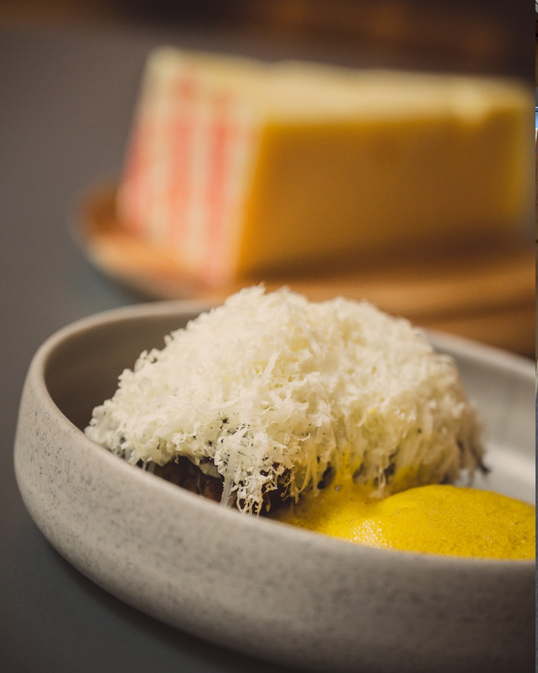 Die Idee sei ihm gekommen, als er über Käse-Cracker und Sablés als Apero-Gebäck nachgedacht habe, so Fabian Fuchs. «Aber am Shortbread mag ich die Konsistenz. Wenn man es nicht so lange bäckt, bis es komplett trocken ist, bleibt es aussen knusprig und innen leicht soft – diese Konsistenz mag ich.» Das klassische schottische Mürbeteiggebäck wird in der Regel süss zubereitet, Fabian Fuchs verwendet stattdessen Emmentaler AOP, der dem Gebäck Herzhaftigkeit und Umami-Tiefe verleiht.
