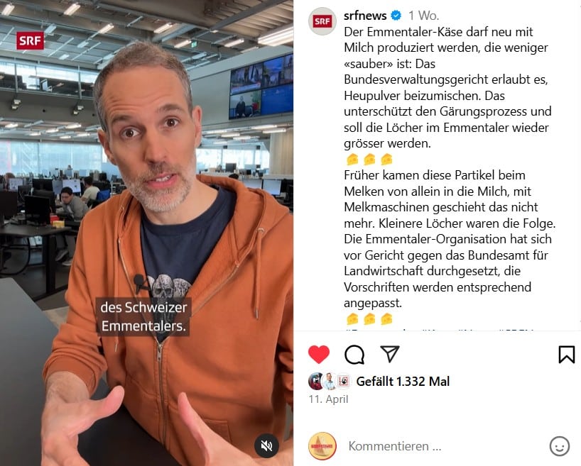 Ein wichtiger Schritt zur Sicherung eines Schweizer Kulturguts ist getan: Der Emmentaler AOP wird auch in Zukunft seine typischen grossen Löcher aufweisen. Die Beschwerde von Emmentaler Switzerland rund um den Einsatz von natürlichem Heublumenpulver zur Verbesserung des Lochansatzes bei der handwerklichen Herstellung von Emmentaler AOP wurde vom Bundesverwaltungsgericht gutgeheissen. www.emmentaler.ch
