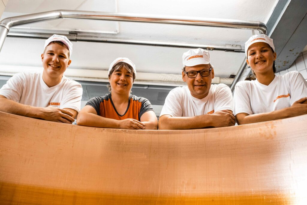 Traditionell von Hand gemacht. Emmentaler AOP entsteht in fast 100 Dorfkäsereien.