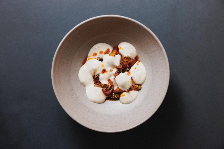 1. Für die Espuma Milch und Rahm erhitzen, mit den Gewürzen abschmecken und in einen Standmixer oder Thermomix geben. So lange mixen, bis eine homogene cremige Masse entstanden ist.