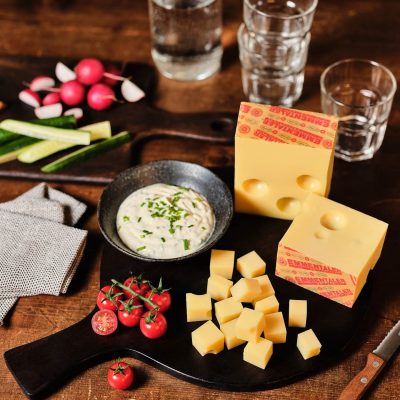 «Emmentaler AOP Gotthelf Slow Food is special in every respect – from its single-dairy production to its unique flavour. This carefully hand-made natural cheese tastes best on its own with simple rye bread and sliced pear, and a glass of Pinot Noir makes the perfect pairing.»