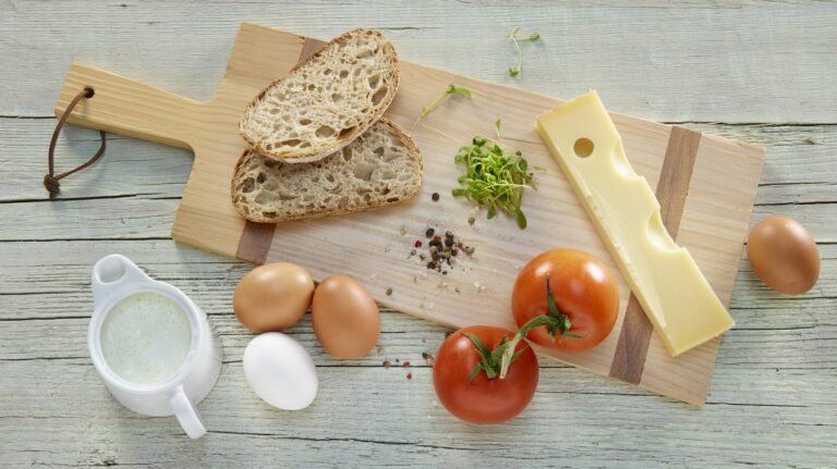 Beat the eggs thoroughly with the milk, salt and pepper. Cut the Emmentaler AOP, tomatoes and bread into cubes approx. 1 cm in size. Mix the tomatoes and cheese in with the eggs.