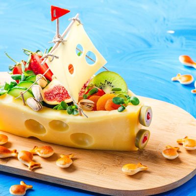 «L’Emmentaler AOP affiné en grotte râpé en copeaux fins est parfait pour concocter un cheeseburger «d’homme des cavernes»: dans un petit pain d’épeautre à l’ancienne avec une belle mie aérée, le tout agrémenté d’une tranche de tomate, de quelques oignons grillés et d’une cuillerée de crème fraîche.»