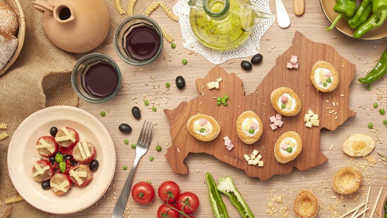 Serviteli con olive nere e basilico fresco.