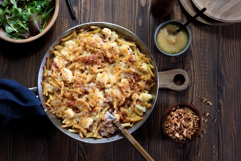Gli «Älplermagronen» (maccheroni alla montanara) con cavolfiore ed Emmentaler DOP di Zoe Torinesi