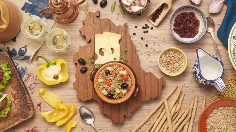 «L’Emmentaler DOP Grotta in scaglie sottili si abbina alla perfezione con un cheeseburger di bontà superlativa, adagiato in un soffice panino misto di spelta con qualche fetta di pomodoro, cipolla fritta e un cucchiaio di crème fraîche.»