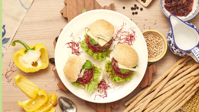 Mini burger con Emmentaler DOP, germogli e spinacino