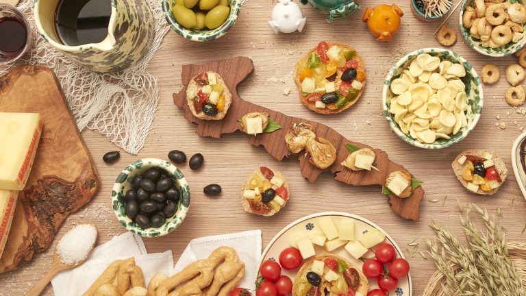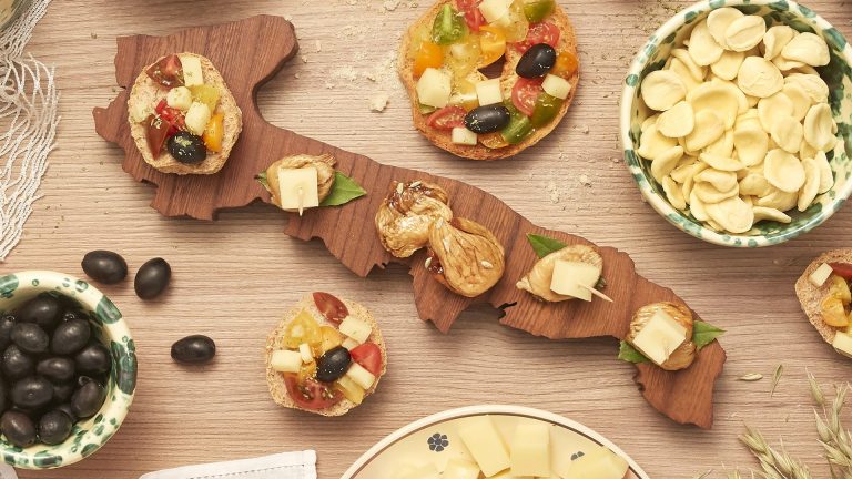 Mini friselle con Emmentaler DOP, pomodorini olive e basilico