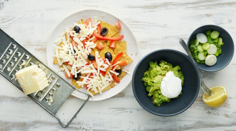 Cuocere al centro del forno a 220 gradi per ca. 10 minuti. Tagliare le cipolle d’inverno e il relativo verde ad anelli, distribuirle sopra i Nachos e servire con la salsa.