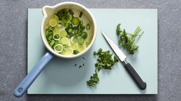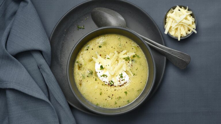 Tagliare il porro ad anelli sottili e rosolarlo nell’olio caldo. Sfumare con il vino bianco o il sidro. Versare il brodo e portare a ebollizione. Aggiungere lentamente la farina di mais mescolando. Lasciar cuocere a fuoco basso per 10-15 minuti con il coperchio, mescolando di tanto in tanto. Condire con sale e pepe.
