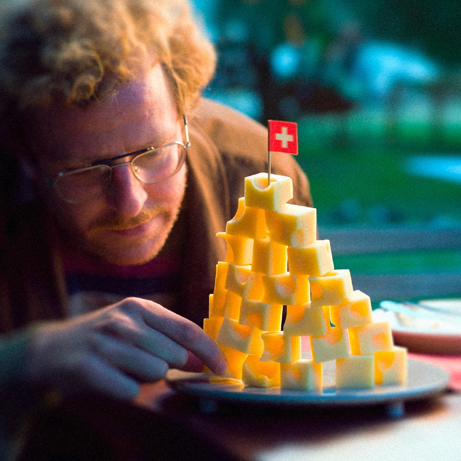 Ma prima che tutti i cubetti di Emmentaler DOP finiscano, è il momento della nostra tradizionale sfida: chi costruirà la piramide di Emmentaler DOP più alta? E indovina un po’? Ho vinto io anche quest’anno, sono imbattibile! Questo è sicuramente uno dei “pezzi” migliori di me, che amo condividere con i miei affetti più cari. E con te.